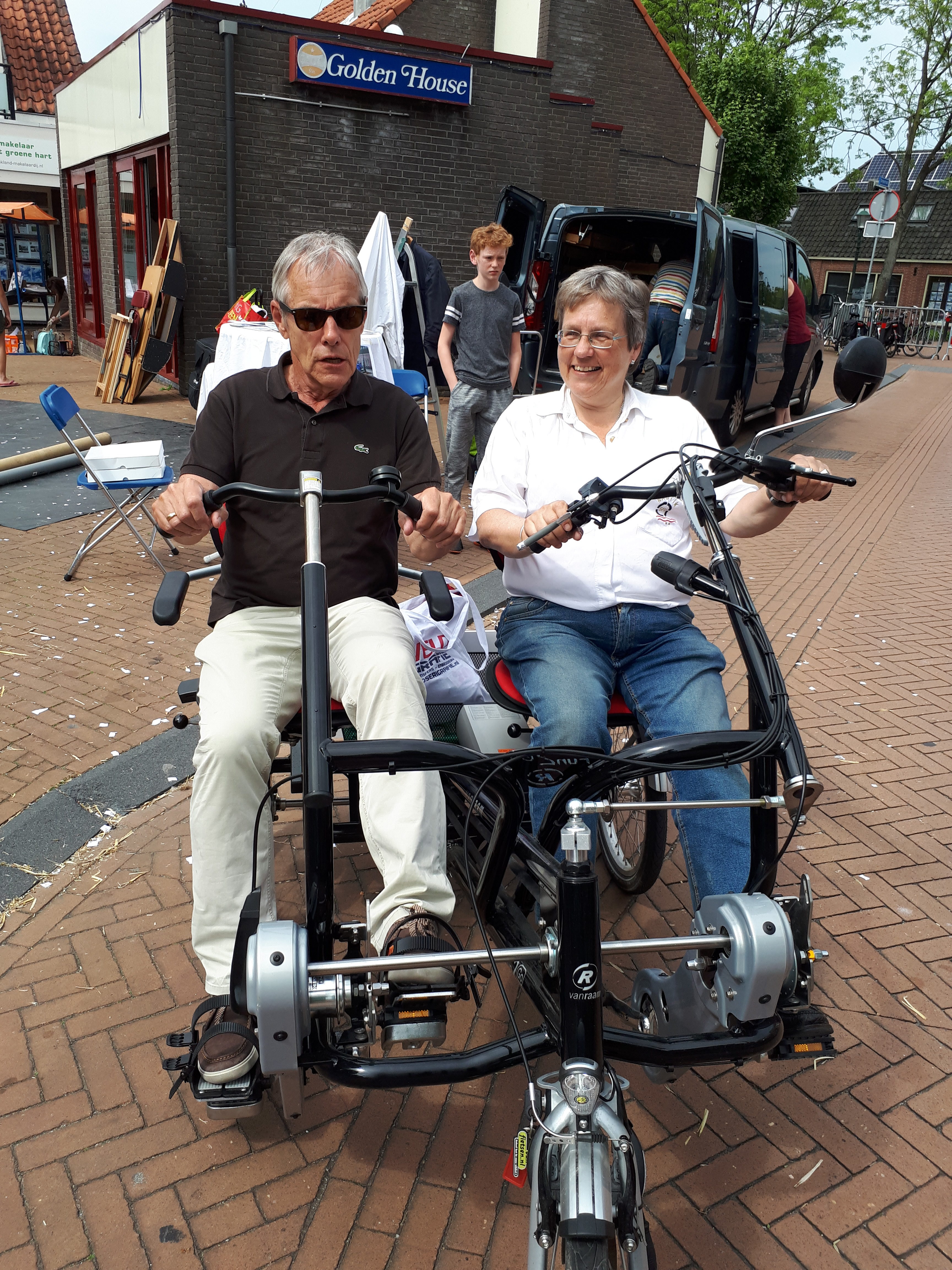 De burgemeester toonde zich ook enthousiast voor het project “Fietsmaatjes Zoeterwoude” en stimuleerde bewoners kennis te maken met het concept. De burgemeester voegde de daad bij het woord en stapte met de voorzitter van de projectgroep, Hans van Polanen, op de duofiets voor een “rondje rond de kerk”.